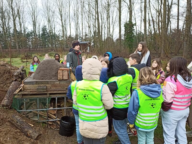 Hier konden de kinderen aan de slag met klei om de eerste laag van de oven te maken.Â