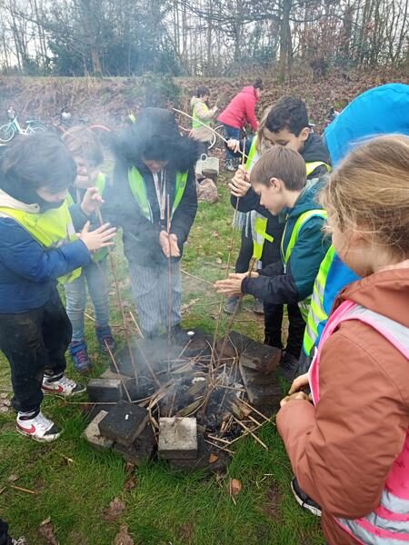 Opwarmen kon aan het kampvuur. Als er alvast niet te veel nat hout op gegooid werd. De les vuur maken houden we wel de volgende keer. 😜